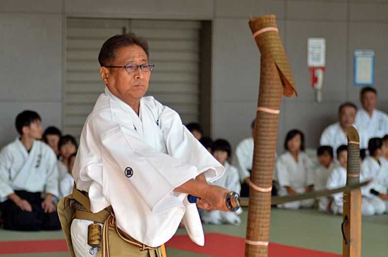 居合の実演は日本刀を使い、実際対象物を斬る様子を実演します。その迫力はサムライ魂を垣間見ることができるのと、同道場での合気道の成り立ちや道理を解説と実演し更に合気道の体験もできるプログラムになっています。