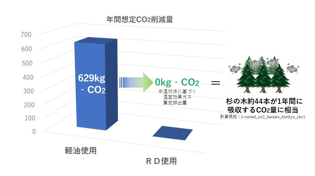 CO2削減量:262kg削減(年間想定削減量629kg ≒ 杉の木約44本が1年間に吸収するCO2量に相当)