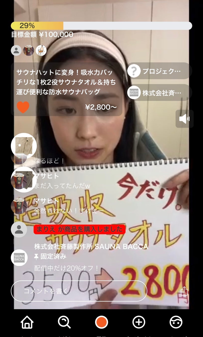 ライブコマース「カウメル」にてクラウドファンディング開始!サウナハットに変身!超吸水サウナタオルが 5月24日〜5月29日18時よりライブ開始!!
