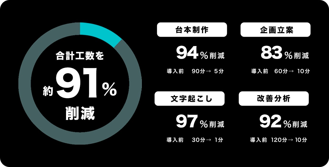 → 📈【実績例】 人気インフルエンサーの台本作成時間が約90分→5分に短縮。