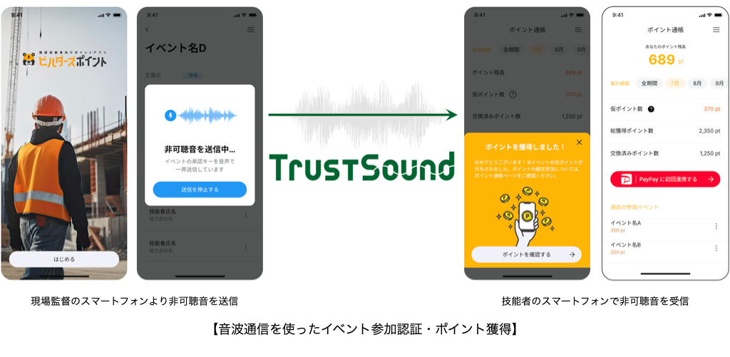リバスタの「建設技能者向けポイント付与」サービス 音波通信の「TrustSound」を採用
