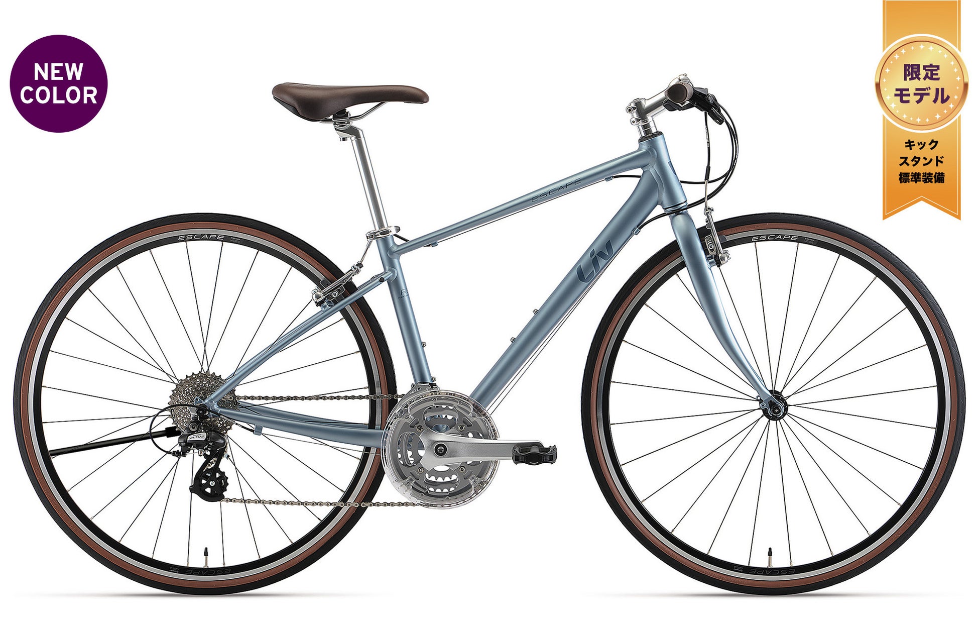 高い基本性能と快適性により、スポーツ自転車ビギナーから上級者の普段使いまで幅広く対応する王道のクロスバイク、「ESCAPE R」シリーズ。そして、ロードバイク譲りの上級仕様で高い走行性能を発揮する1クラス上のスポーツクロスバイク「ESCAPE RX」シリーズ。それらの限定仕様「LTDモデル」は、3月の発売以来、お求めになりやすい価格で大変好評をいただいておりますが、今回それぞれのモデルに多数の新色を追加し、さらに選択肢が豊富となりました。