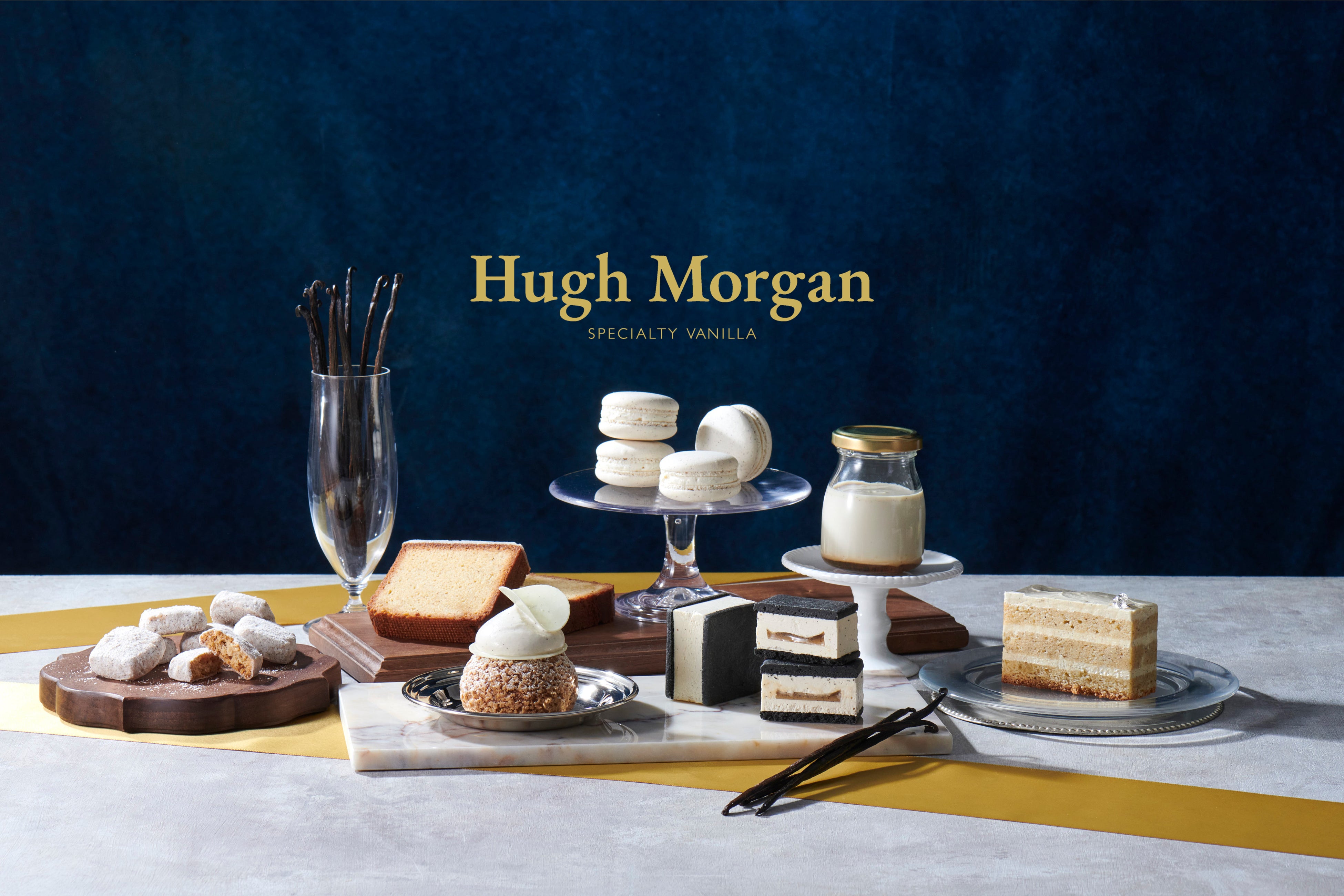 今年4月にオープンした『Hugh Morgan』は、世界から選りすぐりのバニラビーンズを独自に買い付け販売しております。ブランドディレクターは元宝塚歌劇団娘役トップでもある 桜乃彩音 が務め、ミシュラン星獲得店出身のシェフパティシエ 佐川 優 を迎えた高級スイーツラインとして、バターサンドやシュークリーム、プリンなど7種を販売しています。店舗限定で販売してるスイーツラインより人気の「サブレ・オ・ブール」「マカロン・ヴァニーユ」「ガトー・ヴァニーユ」の3種は公式オンラインストアでもお取り寄せ可能です。