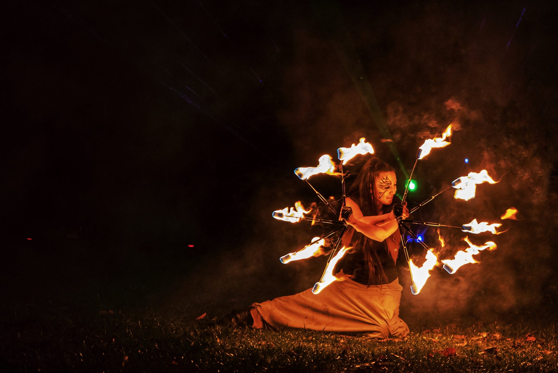 ファイヤーダンスと花火のコラボレーション