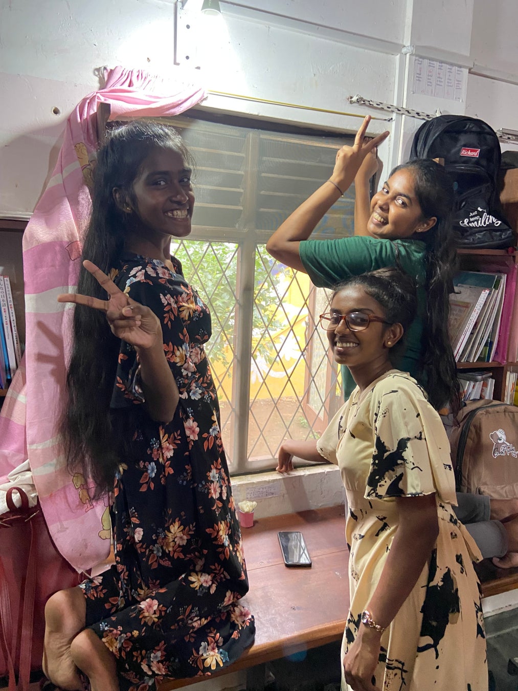 ガールズホームへ戻ると、学校から帰ってきた女の子たちと会う事が出来ました。今回デング熱予防教室でインストラクターになるのはハーンシーさん、ミラーディさん、セウワンディさんの3人です。