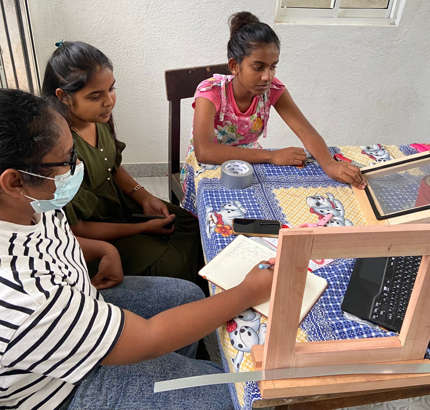 スボーダーさんにシンハラ語の原稿を手伝ってもらい、ガールズホームでリハーサルを重ねます。