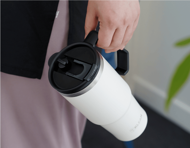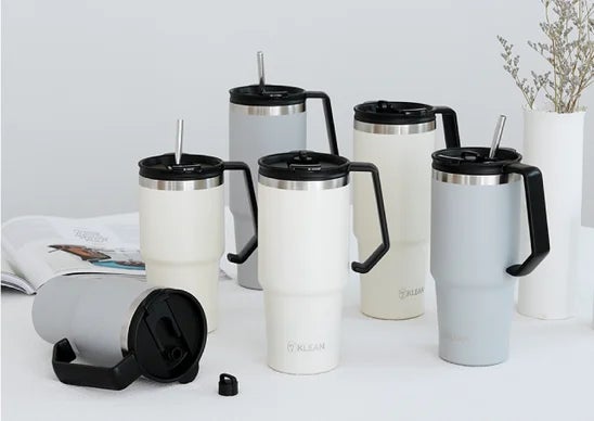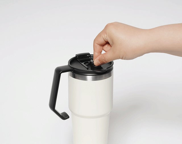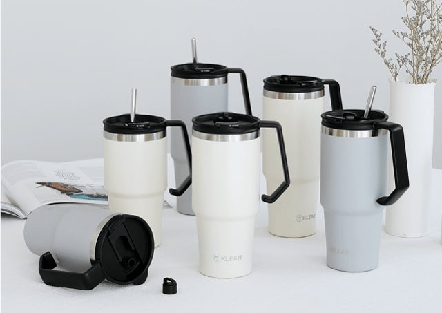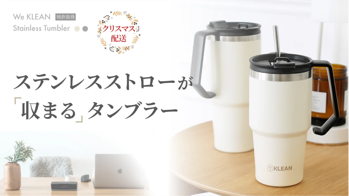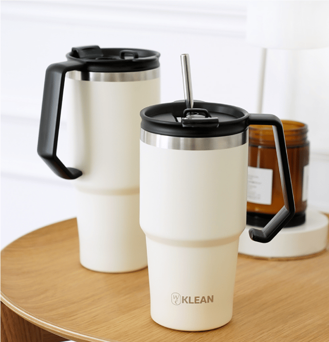 WE KLEAN大容量ストロータンブラーは、キャップを開けるとステンレス製のストローが飛び出します。いつでも温度をキープした飲み物を、持ちやすい取っ手付きで楽しめる大容量タンブラーです。