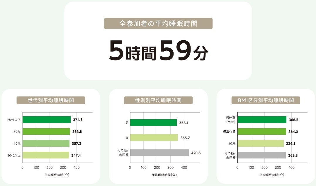 全参加者の平均睡眠時間は5時間59分/約6割が、睡眠の「時間」も「深さ」も足りない“睡眠不足組”