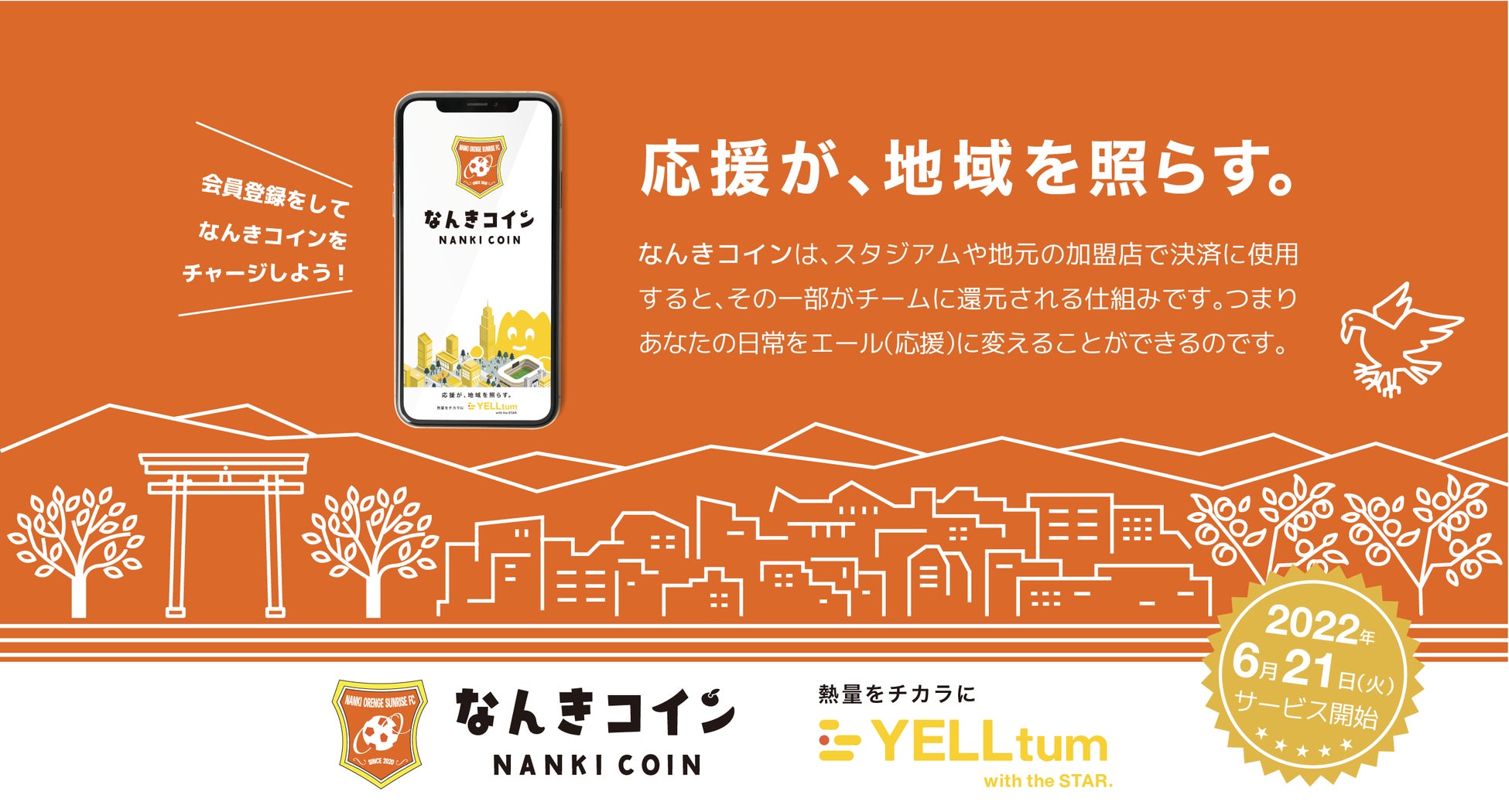「なんきコイン」の発行を通して、新しい収益源の創出だけではなく、南紀オレンジサンライズFCの理念でもある「サッカークラブを通じた継続的な地域貢献の実現」に向けて、和歌山県の地域活性化に貢献していくことを目標としております。
