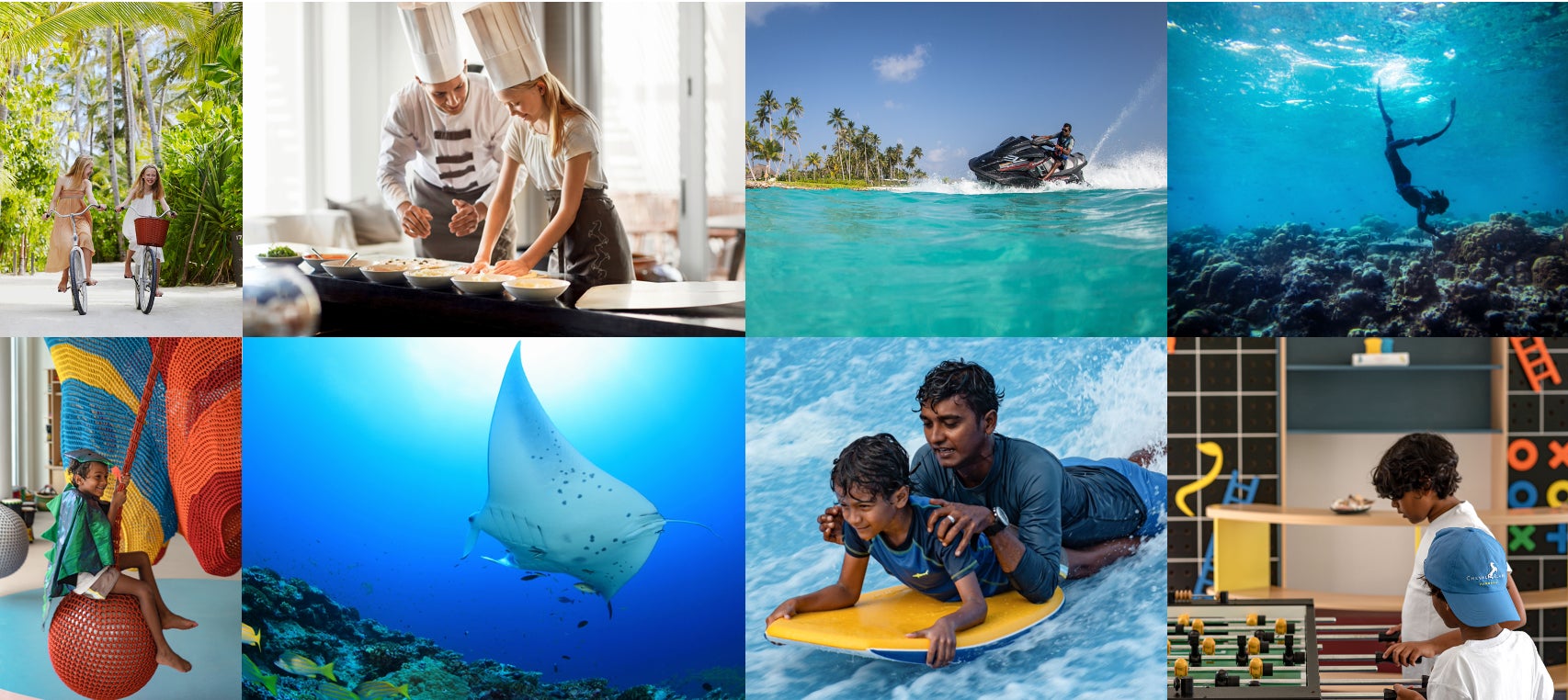 モルディブの海の美しさは水の色や透明度だけでなく、数々の海洋生物との出会いにもあります。アオウミガメの大群で有名なクレドゥを探検したり、マンタ、エイやサメの宝庫として知られるユネスコ保護のハニファル湾の美しい海でシュノーケリングやダイビングを楽しんだり、イルカと一緒にボートと泳ぐサンセット・クルーズや、モルディブの伝統的な漁業を体験することもできます。さらに、大人だけでなくお子様も楽しめる施設として、サーフ・シュミレーターやLe Carrousel (ル・カルーセル)やPaddock Club(パドック・クラブ)をご用意しており、自然、文化、アート、スポーツなど、様々な体験ができる環境も整っています。お子様にとっても忘れられない旅をお約束いたします。