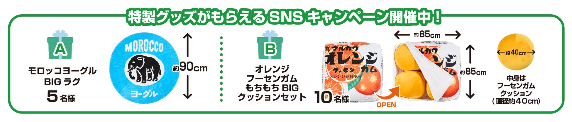 下記応募要件を全て満たした方の中から抽選で特大サイズの特製駄菓子グッズをプレンゼントいたします。