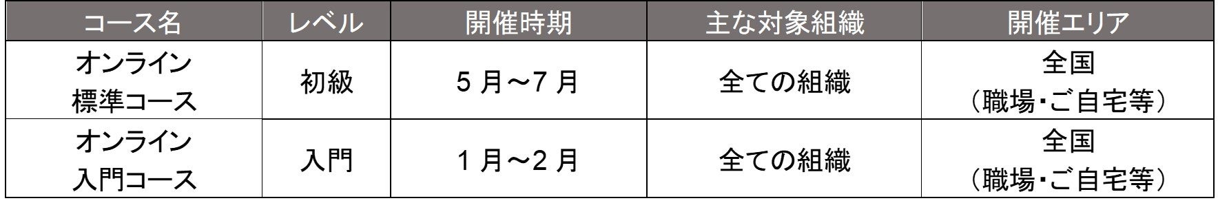 オンライン演習: オンライン標準コースは、5月24日より受講申込み開始及び開講予定。受講可能期間は7月19日まで*5。オンライン入門コースは、2023年1月開講予定。