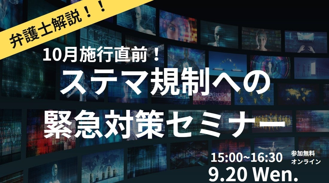 『10月施行直前!ステマ規制への緊急対策セミナー』を9月20日(水)に開催