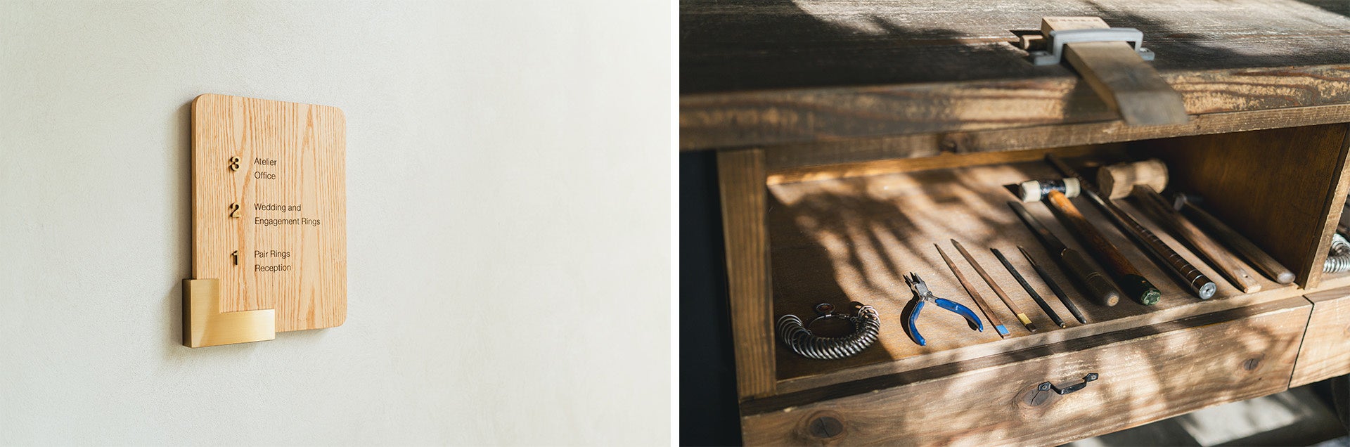 店舗面積を大幅に拡大。木のぬくもりを感じる広々とした空間で、ゆったり指輪作りに没頭していただけます。
