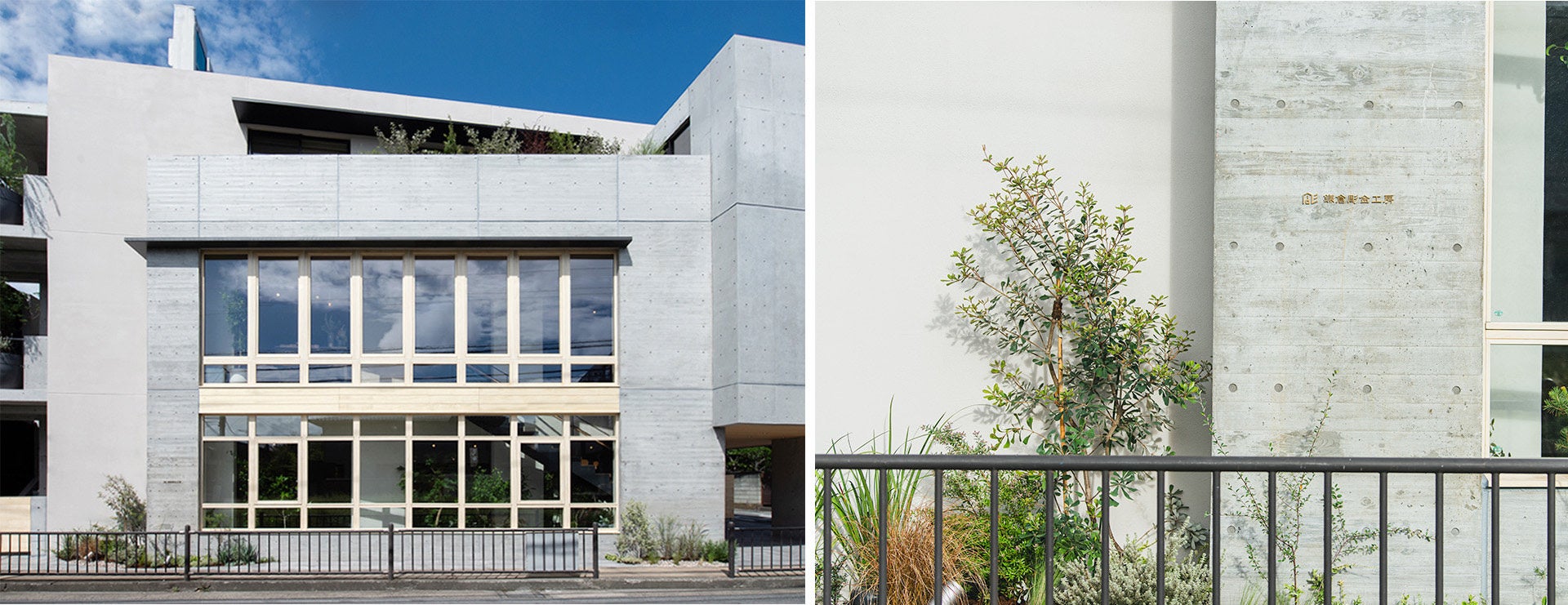 JR、江ノ島電鉄の鎌倉駅西口から徒歩3分の、情緒あふれる閑静なエリアに立地。コンクリートとガラス張りの外観が目印です。