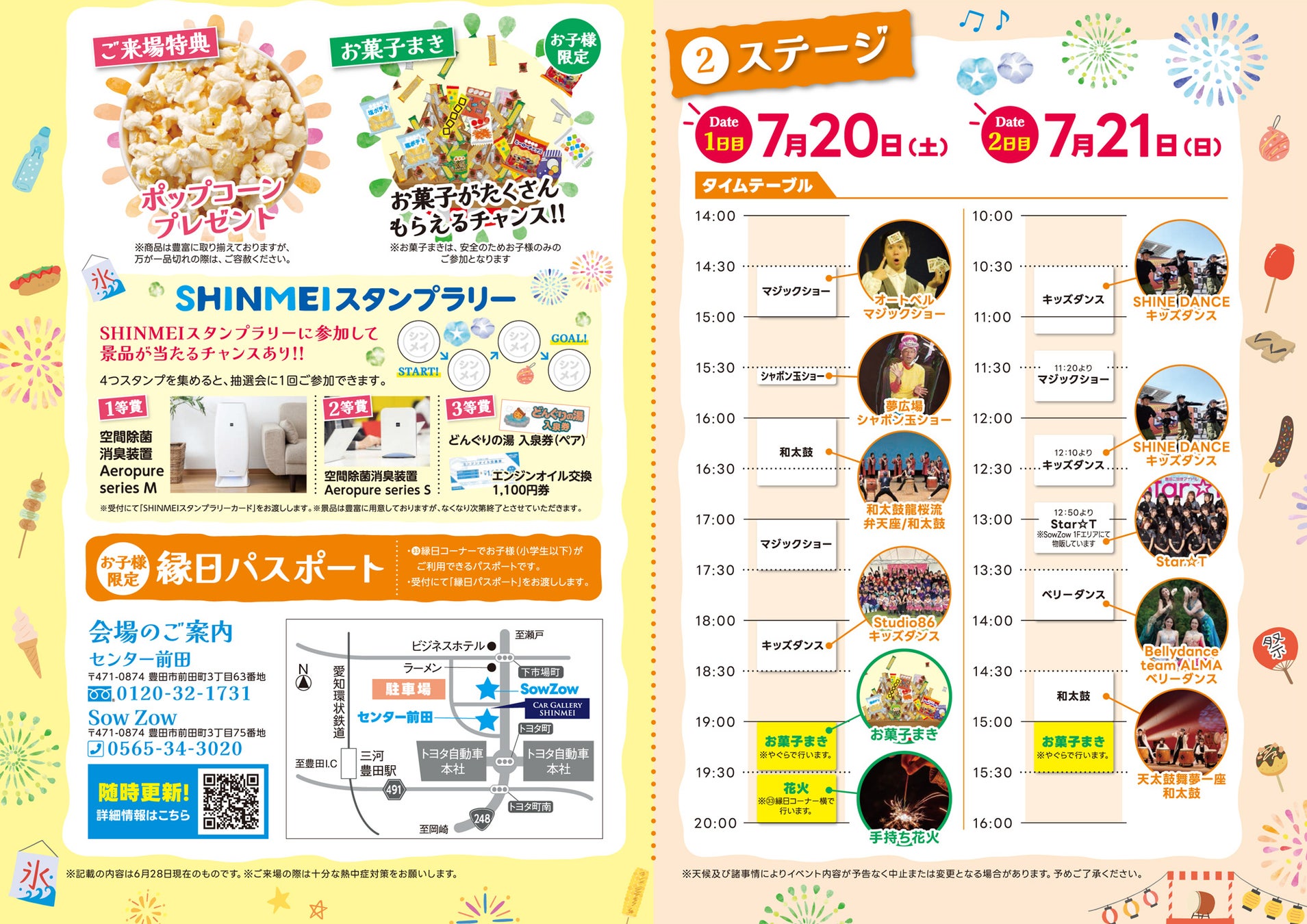 7月20日(土)21日(日)はSHINMEI夏祭りを開催!お祭り気分を味わいながら素敵な景品・特典ゲットをするチャンスが盛りだくさん。
