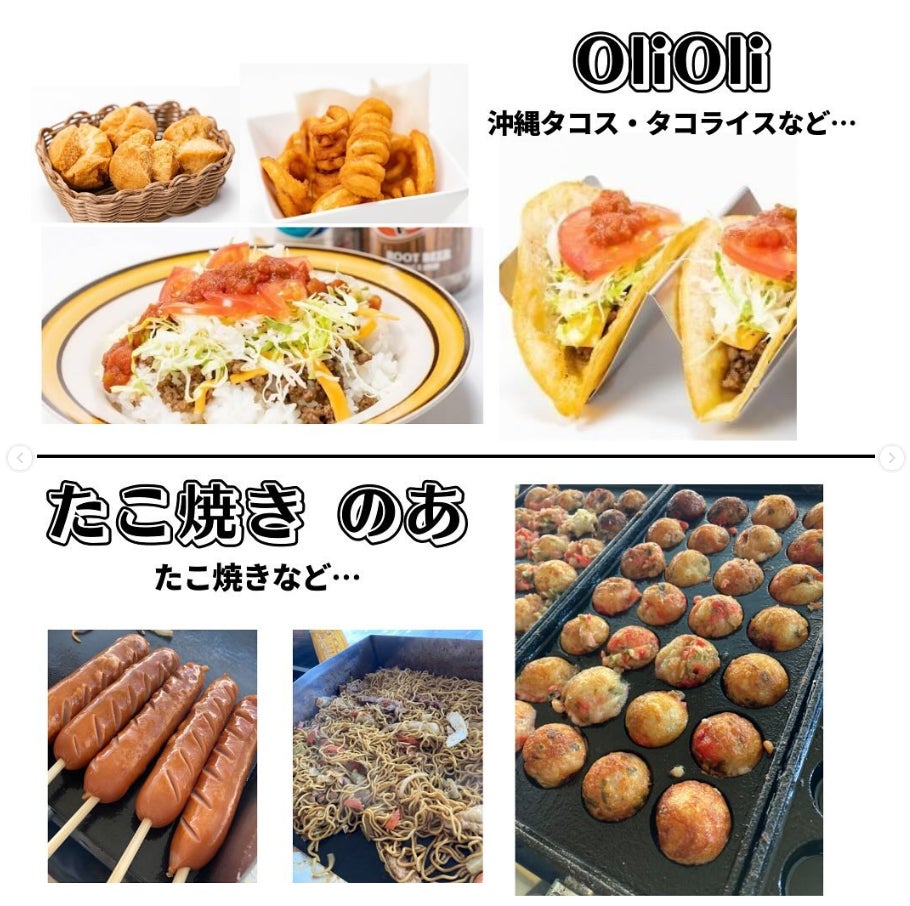 「ライスバーガー」「ポークたまごにぎり」「沖縄タコライス」など、多彩なメニューが勢揃い。夏ならではのスイーツ(ジェラート・かき氷)も楽しめます。美味しいひとときをお過ごしください。