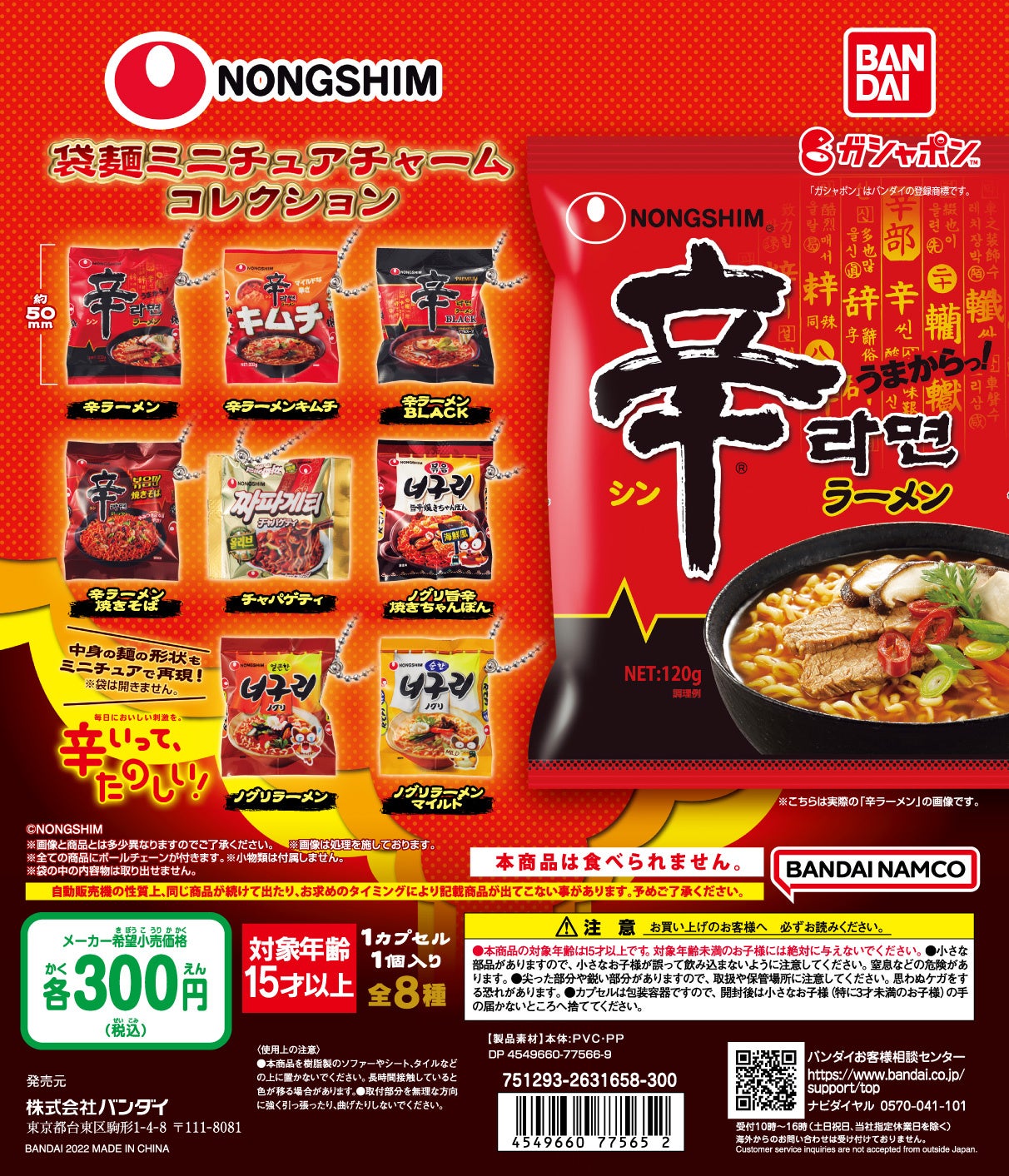 株式会社農心ジャパン(所在地:東京都千代田区 社長:金大廈)は、株式会社バンダイ(所在地:東京都台東区)のカプセルトイ「ガシャポン」とコラボして、2022年9月下旬に「農心袋麺ミニチュアチャームコレクション」を発売致します。