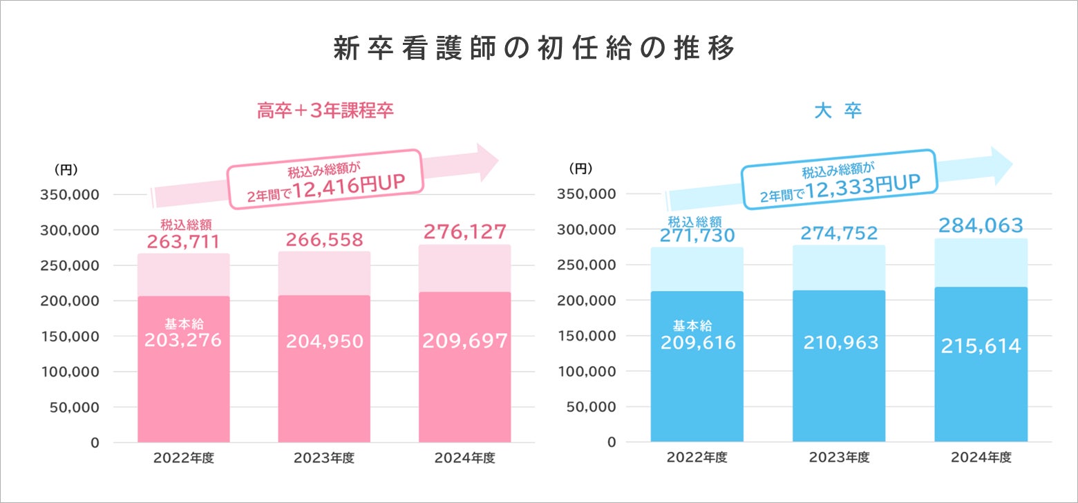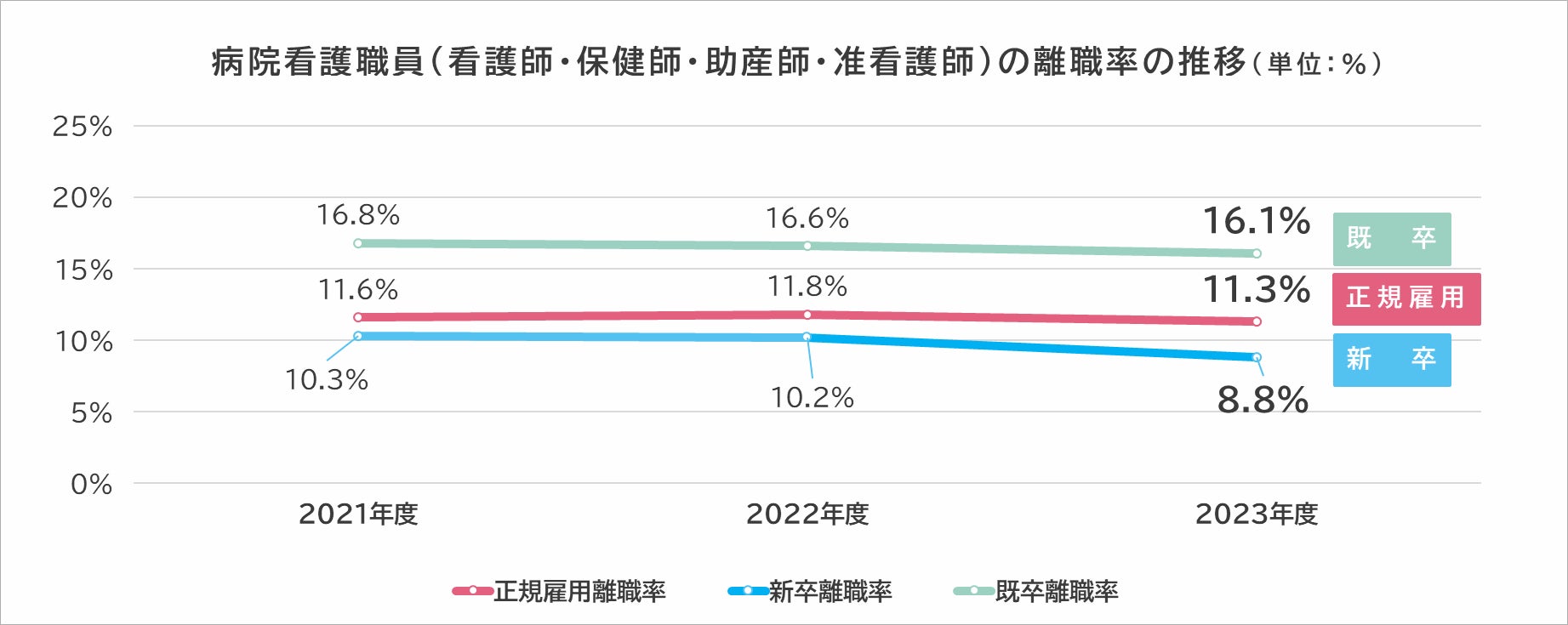「2024年病院看護実態調査」では、新人の看護職の離職率の改善や、給与の増加、多様な働き方の導入が進んでいることなどが結果に示されました。