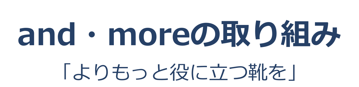 便利で豊かな時代、物があふれて「売れ残りは廃棄する」が常態化しています。and・moreは、これまで売れ残りは廃棄せず、施設や被災地などに寄付してきました。コロナ禍で、靴の需要が減少する中、ますますSDGsの重要性を考えるようになりました。国連が提唱する持続可能な社会を実現するための世界目標SDGs、12番目の目標である『つくる責任 つかう責任』にコミットし「この1足で完結」する「よりもっと役に立つ靴」を提供することで廃棄ゼロを実現していきます。トレンドに左右されず、本当に必要なもの、本当に役に立つものだけを持つことで廃棄を減らせると考えています。