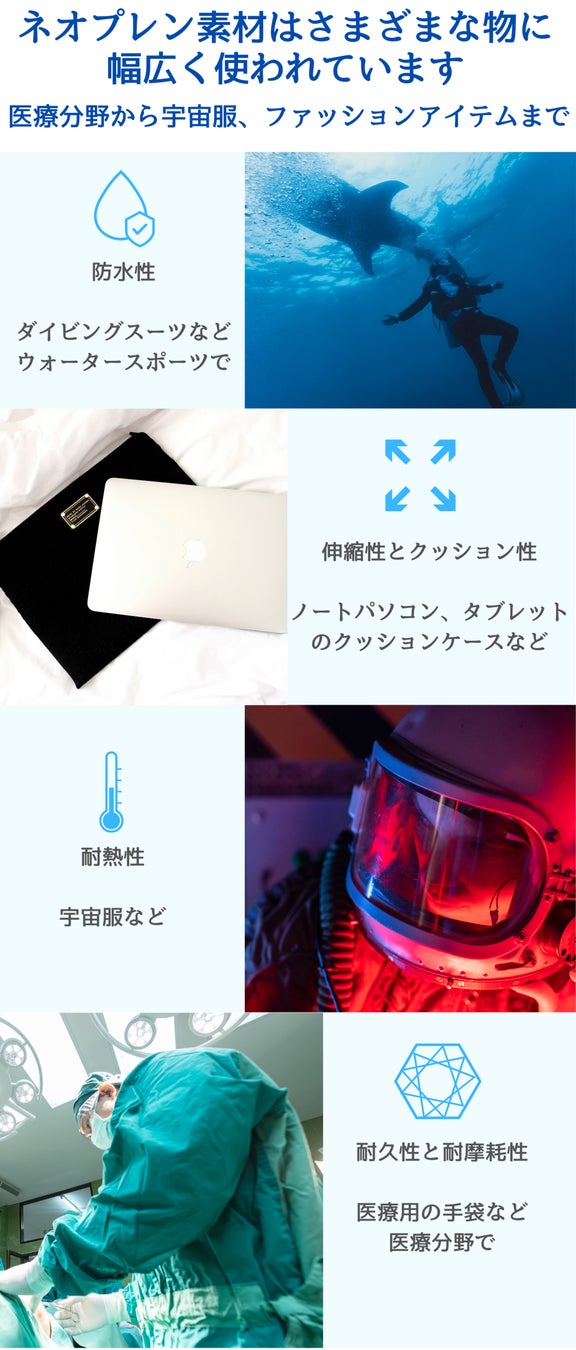 ダイビングスーツや宇宙服、医療分野などに使用されているネオプレン素材をシューズに応用
