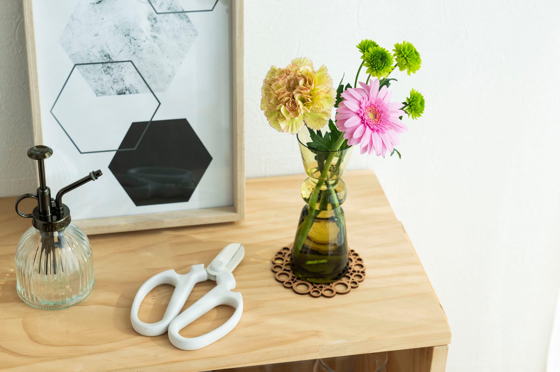 +hanaの定期便の花は丈が長め。定期便が届いたら行う花のメンテナンス「水あげ」で少し茎をカットしていけると、ぴったりのサイズに。