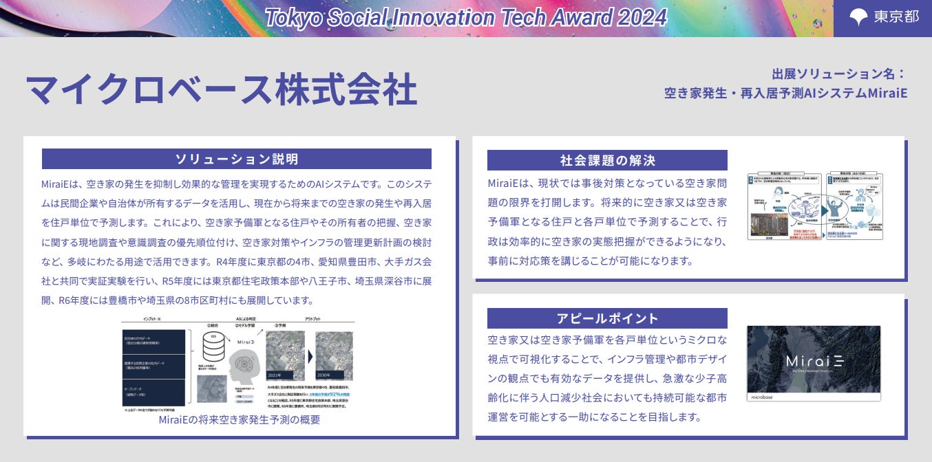 ソリューション名:空き家発生・再入居予測AIシステムMiraiE(AI分野)