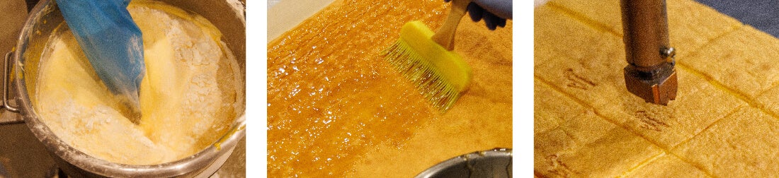 大江ノ郷自然牧場のパンケーキの賞味期限は10分!その理由は、ベーキングパウダーを使うことなく卵の力で膨らませているので、時間の経過とともにその食感・味わいが変化してしまうためです。職人が一枚一枚丁寧に焼き上げるあの食感・あの味わいをどう再現するか…、賞味期限10分の壁が立ちはだかりました。