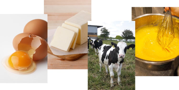 パンケーキの原材料はとてもシンプル。だからこそ、よい素材を使うことが大切です。そのため当牧場では、鳥取県産の牛乳にバター、生クリーム、国産小麦など、安心安全な食材のみを使用しています。
