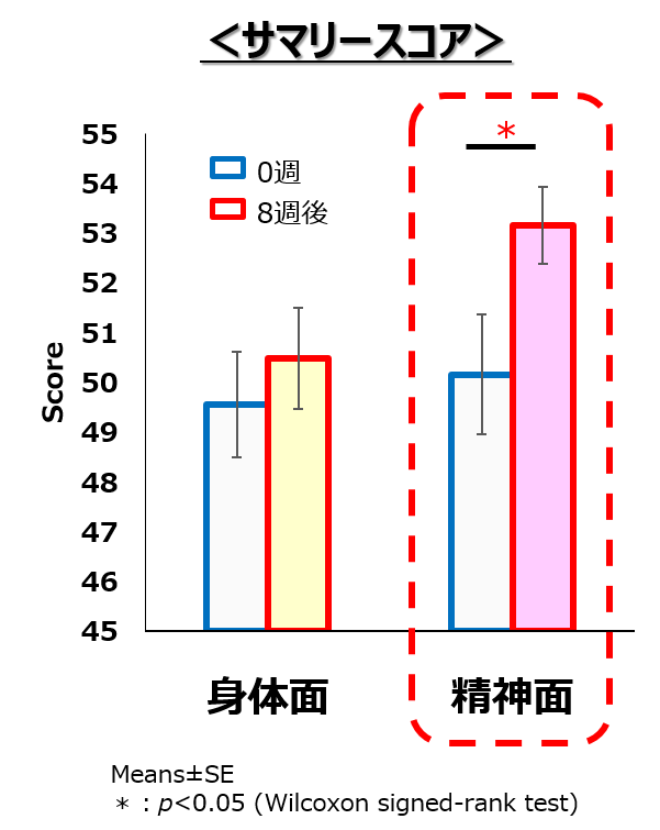 健康関連QOLはSF-8調査票を用いて調べました。SF-8は疫学調査などで国際的に広く
