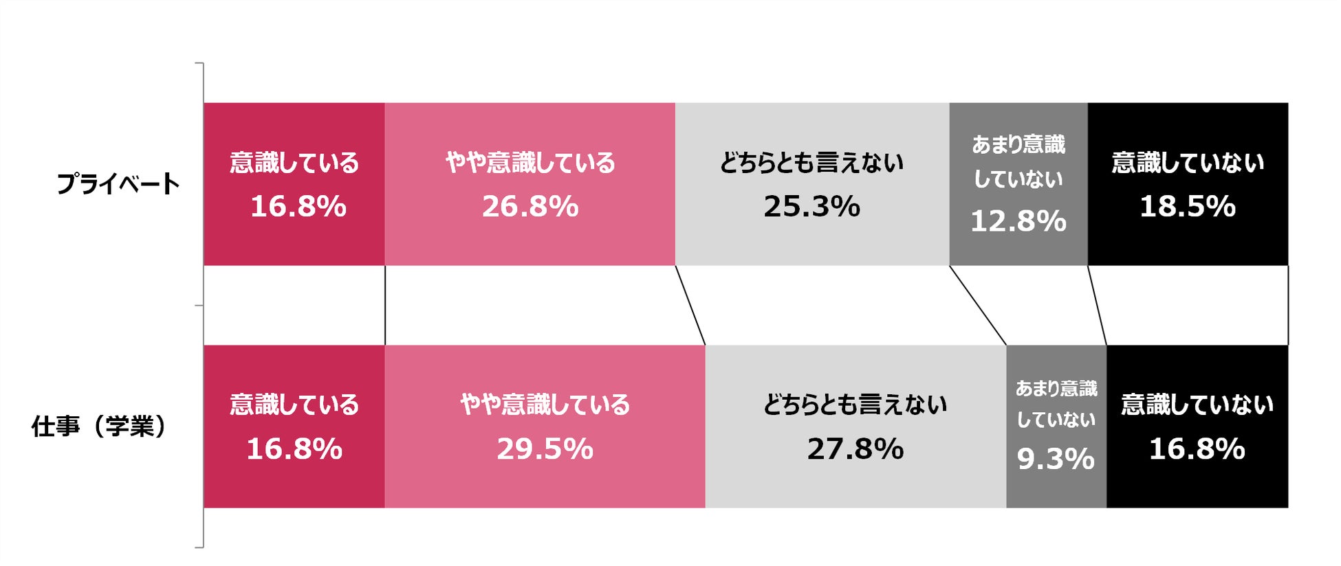 Z世代はタイパ(タイムパフォーマンス)を気にするなどとよく言われますが、実際どうなのでしょうか? 10~20代のZ世代の男女400人に聞いたところ、プライベートで「意識している・やや意識している」は43.6%、仕事(学業)で「意識している・やや意識している」は46.3%の結果に。半数には満たないものの仕事だけでなくプライベートまで比較的多くのZ世代がタイパを意識していることがわかりました。