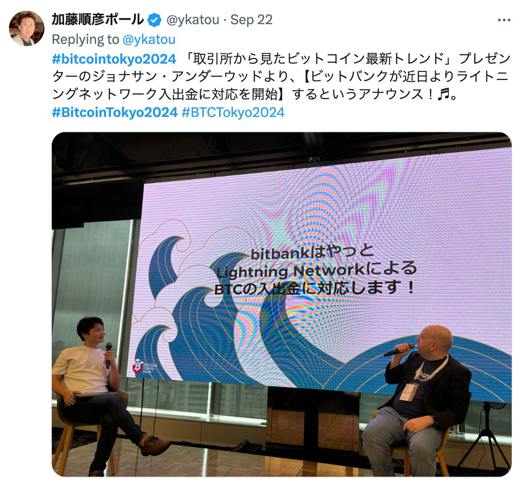 カンファレンス会期中と終了後、参加者からは非常にポジティブなフィードバックが寄せられました。さらに、SNSではハッシュタグBitcoinTokyo2024を付記した投稿が相次ぎ、カンファレンスへの関心の高さが伺えました。
