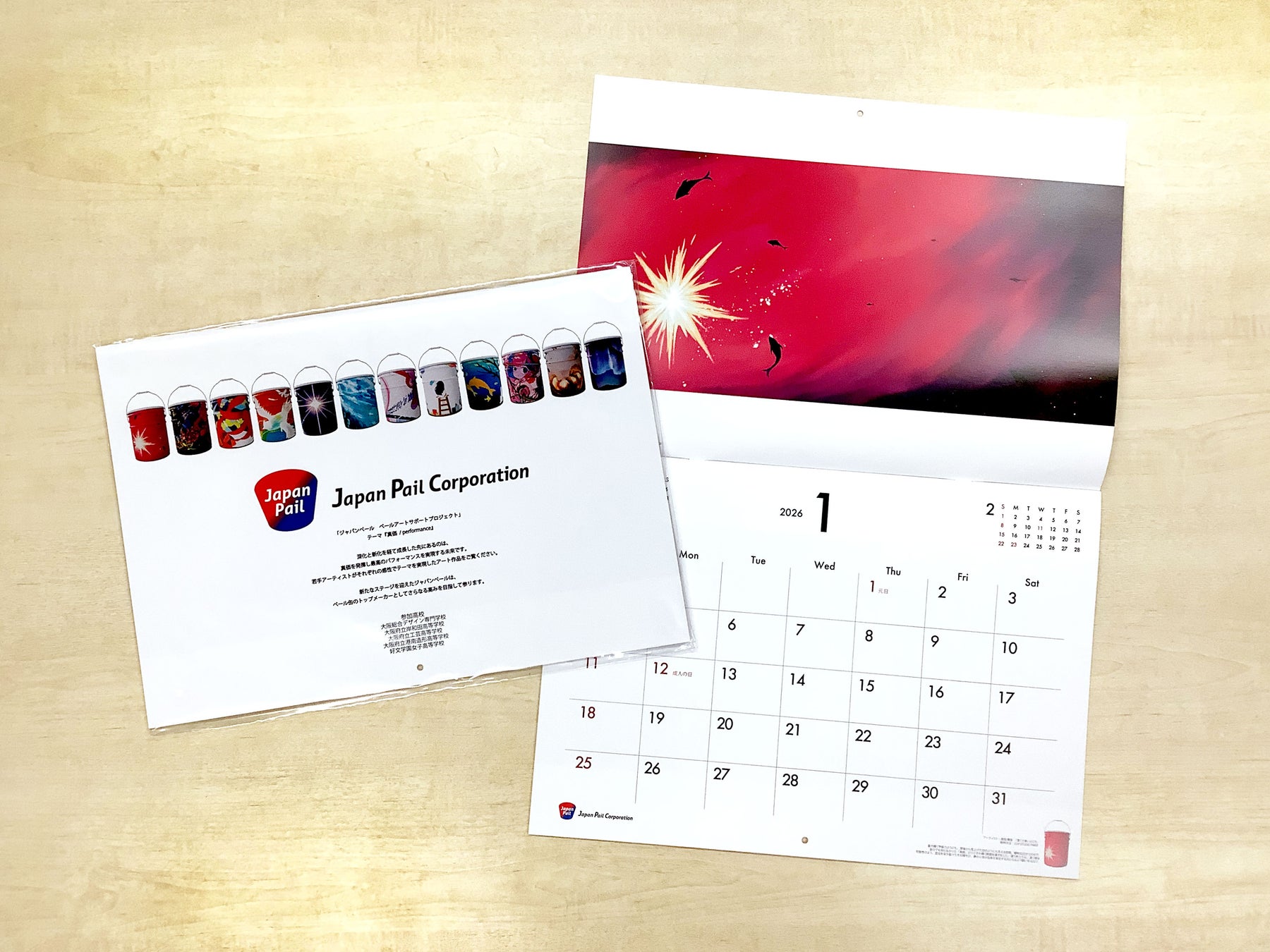 同じデザインでも、ペール缶と1枚絵では少し雰囲気が異なります。ぜひ、若手アーティストによる12作品をカレンダーでもお楽しみください。