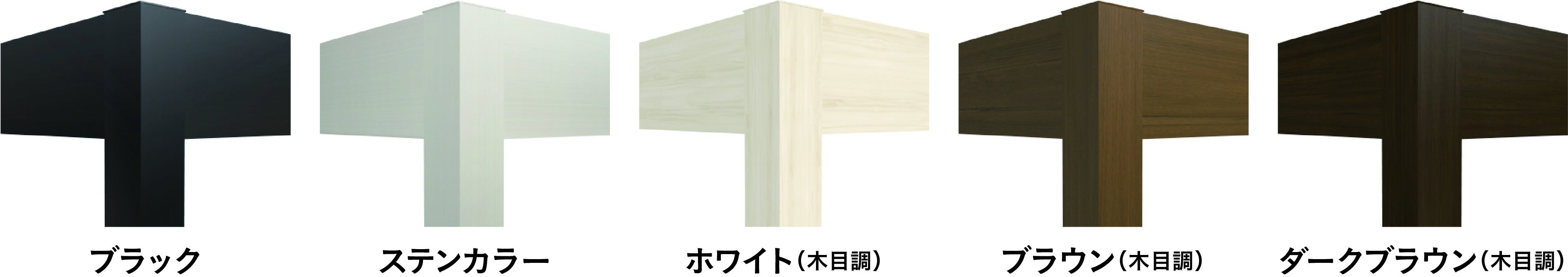 5色のアルミフレームをご用意。ブラック、ステンカラー、ホワイト(木目調)、ブラウン(木目調)、ダークブラウン(木目調)からお選びいただけます。