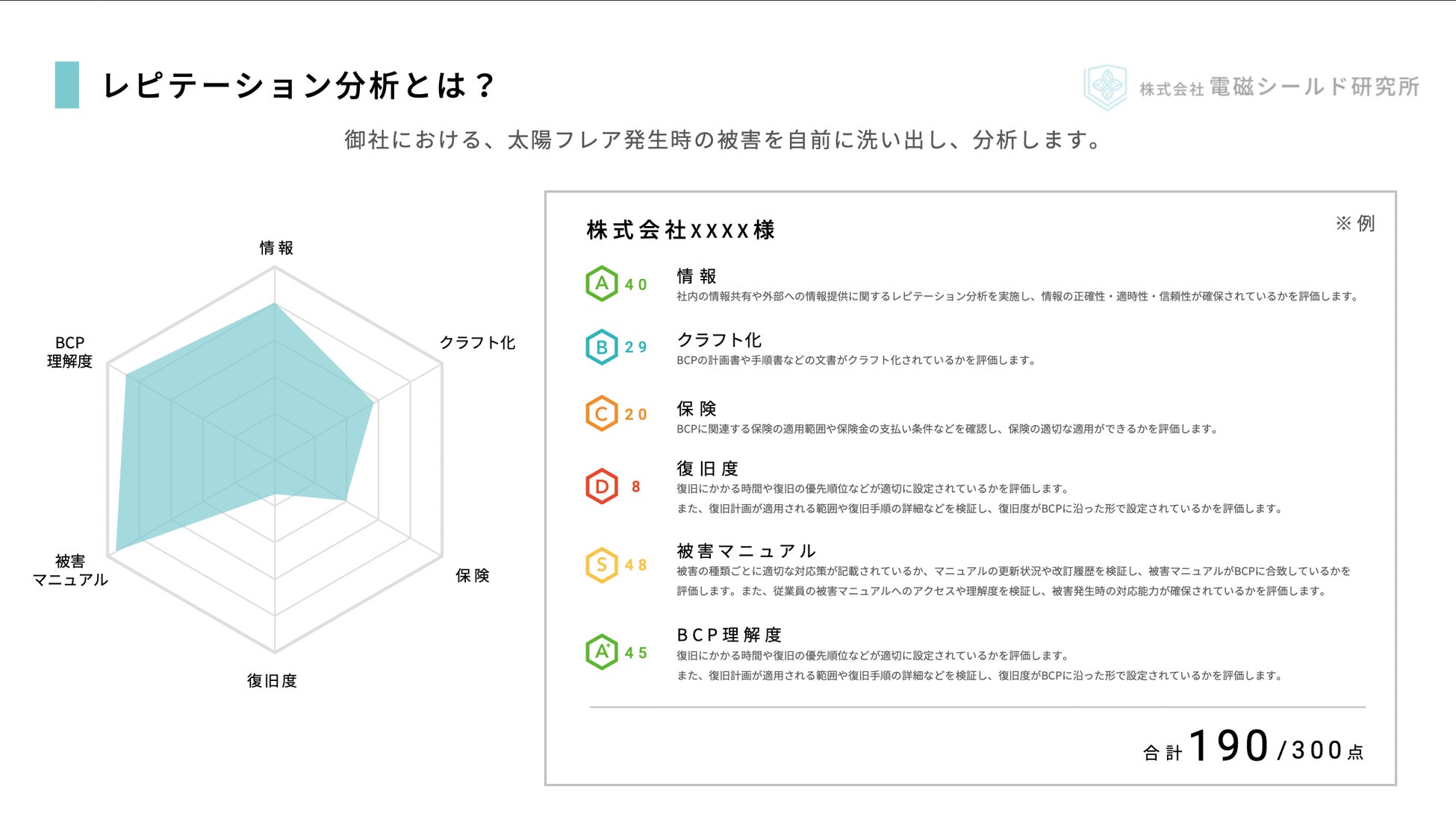 太陽フレアのような想定外の出来事に備え、BCP策定の重要性が企業にとって再認識されています。しかし、その実現には膨大な時間やリソースが必要です。本サービスでは、顧客のニーズに合わせたBCP策定をサポートし、企業の事業継続に向けたリスクマネジメント強化を目指します。