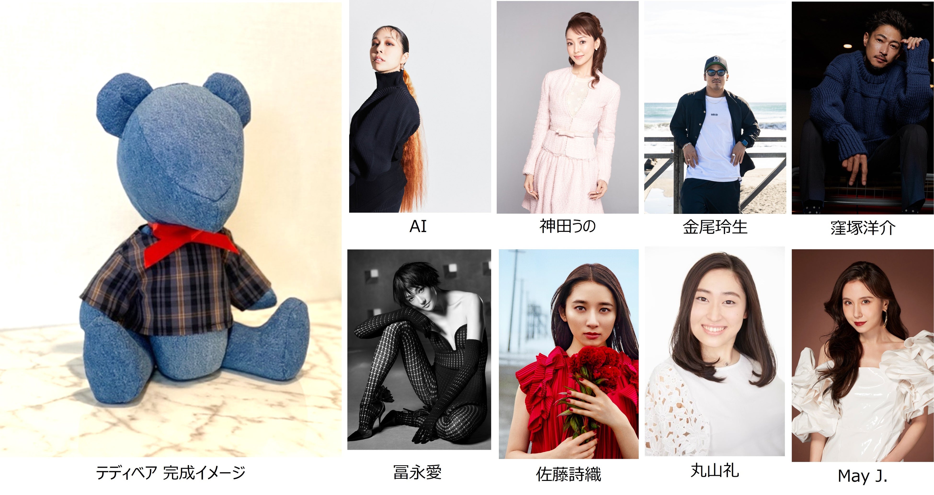 着なくなった衣服を処分せずに再利用して、衣服をより長く、楽しく愛用できる文化を日本に!という理念に賛同いただいた著名な方々から実際に衣服を提供していただき、 “テディベア”を制作、会場で展示・販売いたします。本企画を通じて、リデザインされた商品を手に取っていただき衣服のリサイクルへの関心を高める施策となっています。この試みに、AIさん(歌手)、神田うのさん(モデル・ファッションデザイナー)、金尾玲生さん(プロサーファー・プロデューサー)、窪塚洋介さん(俳優)、佐藤詩織さん(アーティスト)、冨永愛さん(モデル)、丸山礼さん(お笑いタレント)、May J.さん(歌手)(※五十音順)他が共感し、協力頂きました。第2弾の衣服提供者も後日発表いたします。