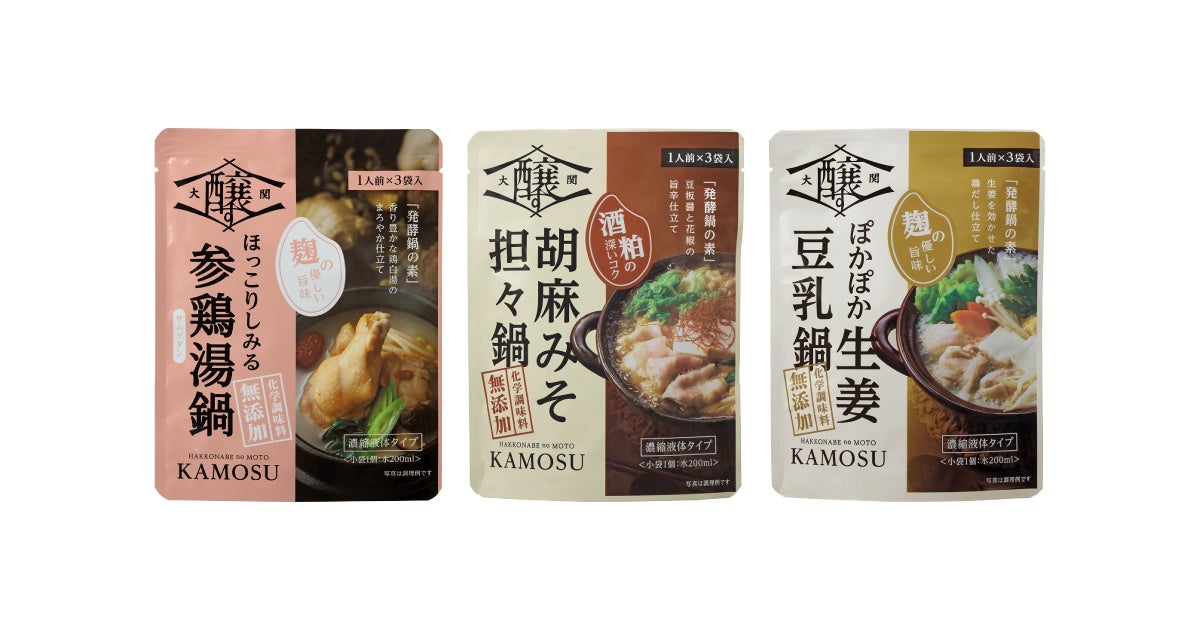 ~ 『大関醸す』発酵鍋の素 今年は3種類で期間限定発売 ~新発売「ほっこりしみる参鶏湯鍋」再発売「胡麻みそ担々鍋」「ぽかぽか生姜豆乳鍋」