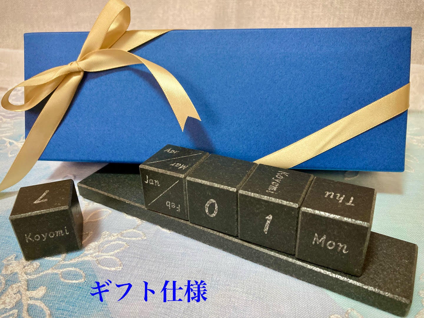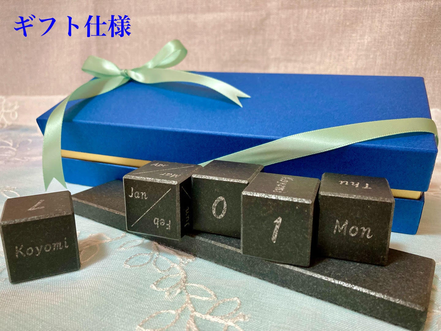カレンダーとしての機能はもちろんですが、インテリアとしても優秀な商品となっています。デスクに置いても存在感はありながら邪魔にならず見やすい大きさを追求し、今回のサイズに行きつきました。アロマストーンやお香などを置いて香りを楽しんだり、一輪挿しなどを置いて華やかさをプラスしたり、ストーンの配置を変えてオシャレに置くのも素敵ですね。手にしていただいた方が自由にアレンジして楽しんでいただけるオリジナル性を秘めているのも魅力の一つです。お誕生日はもちろん、合格祝いや就職祝いなど大切な方へのワンランク上の贈り物としても最適ではないでしょうか。