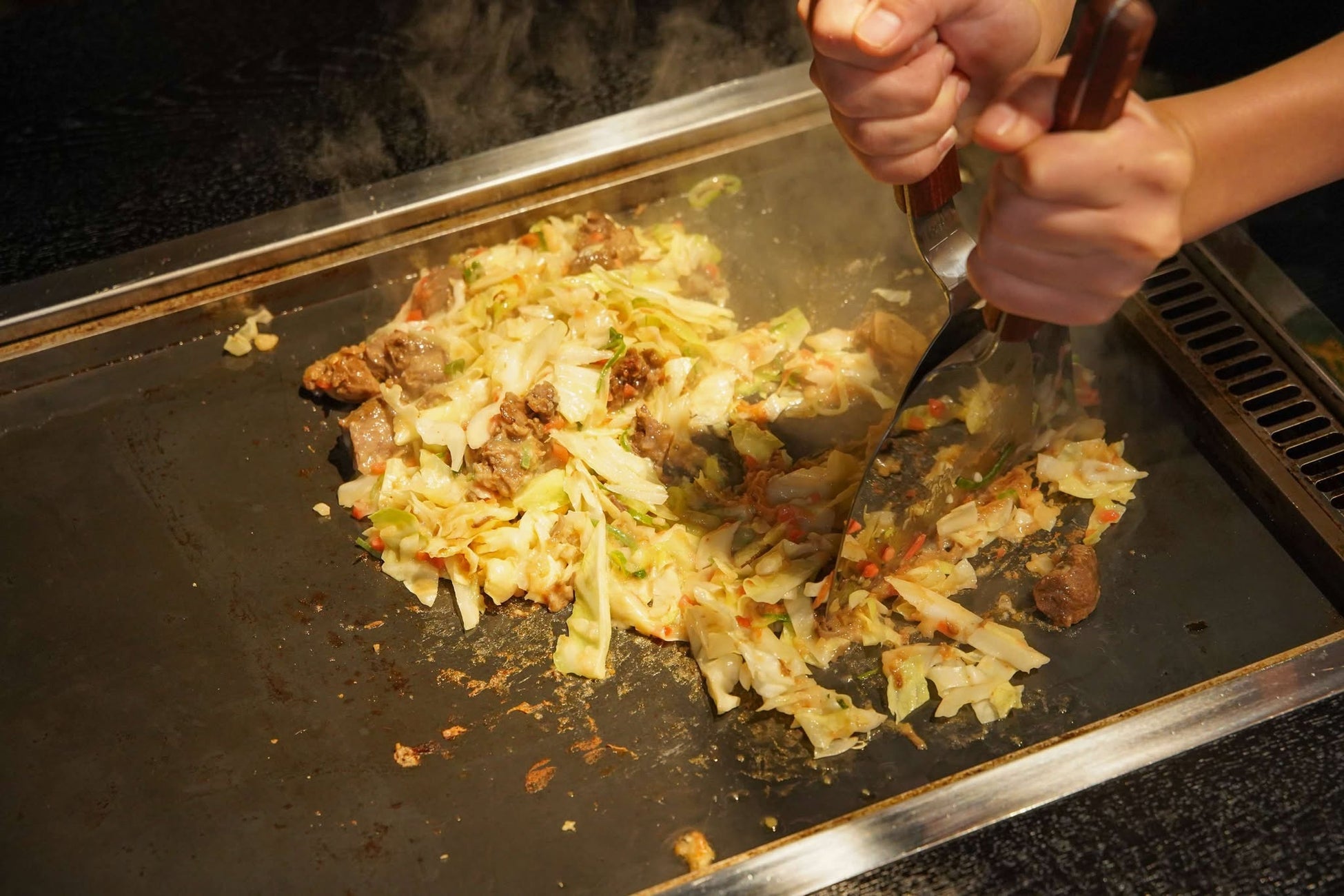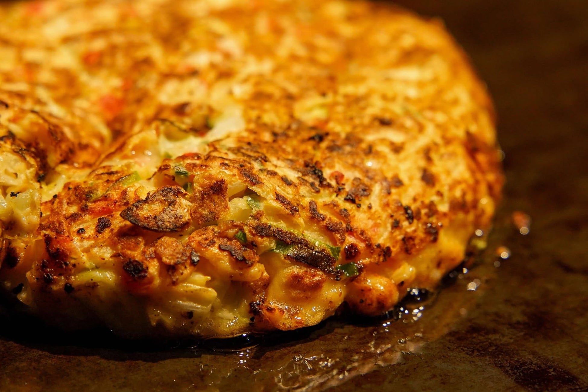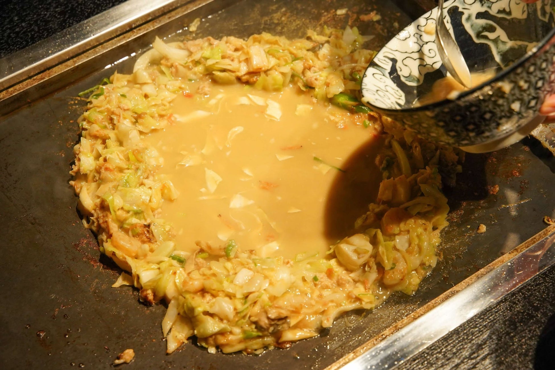 野菜たっぷり、ふわふわカリカリに仕上げた自信作!外はカリッと香ばしく、内側はふわっと柔らかく、まさに理想のお好み焼き。スタッフが心を込めて焼き上げるので、最高の状態で提供いたします。