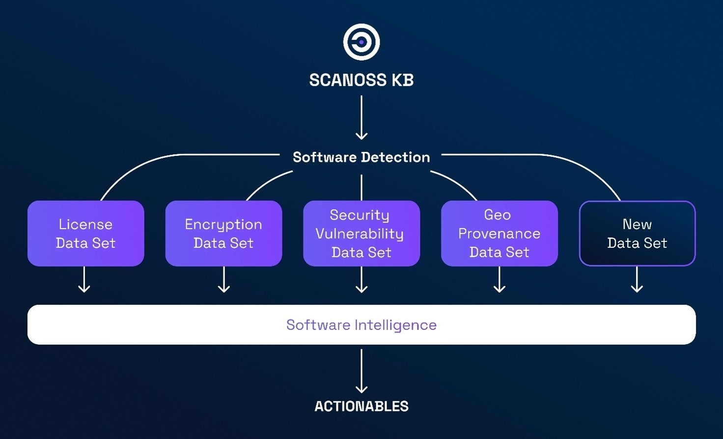 APIを介した方法で「SCANOSS Knowledge Base」を提供しており、4つの異なるデータセットを活用したサービスでOSSを可視化します。