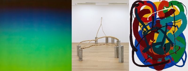 (画像左から)杉本博司《Opticks 016》2018年 © Hiroshi Sugimoto, courtesy of Gallery Koyanagi./菅木志雄《離空》1975年 Courtesy Tomio Koyama Gallery./田 中敦子《作品(題名不詳)》1972年 Courtesy Kotaro Nukaga.