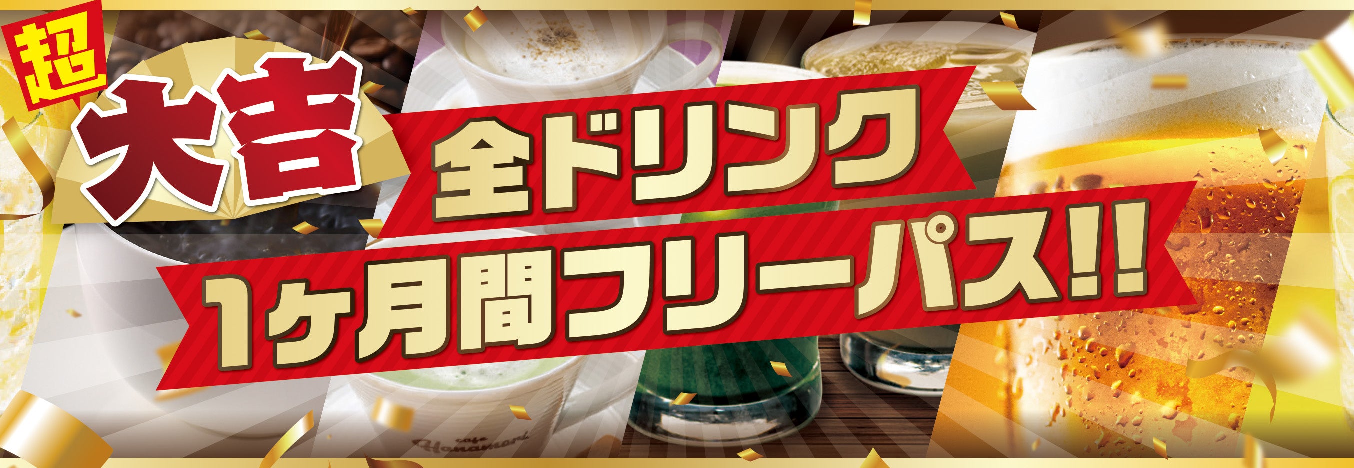 □【超大吉】 全ドリンク 1ヶ月間フリーパス!!