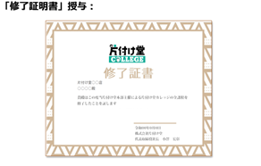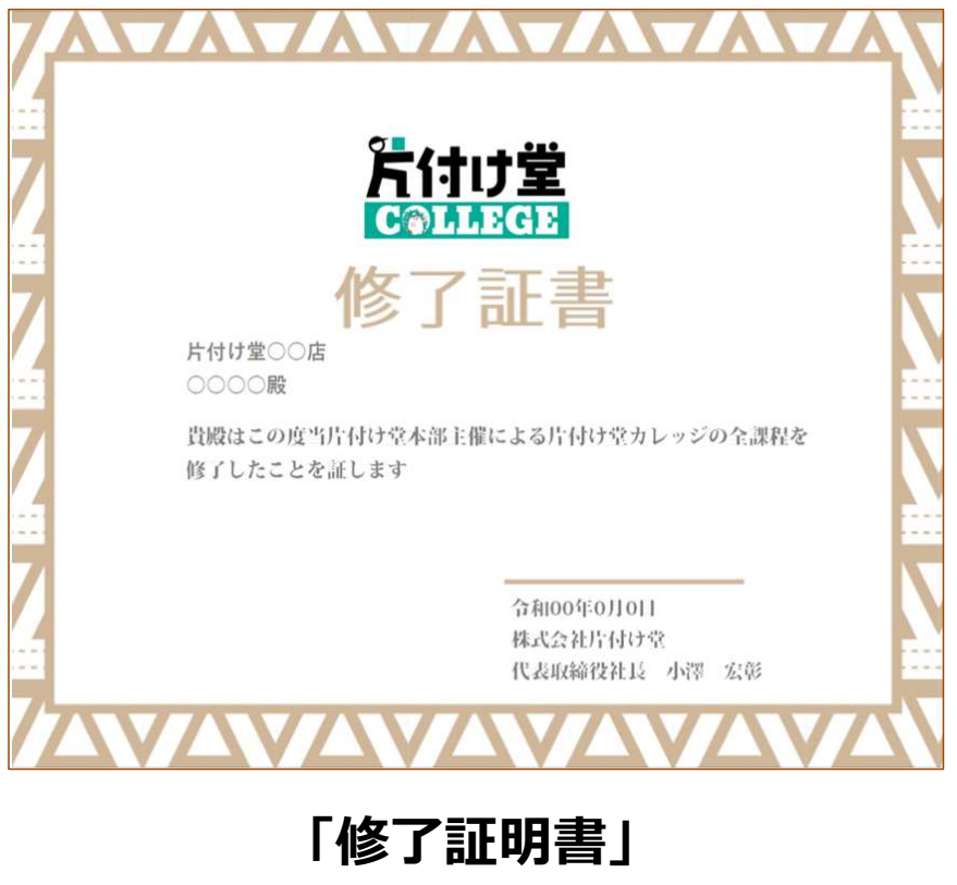 全カリキュラムの受講並びに修了試験に合格した従業員には、修了証明書を授与しております。