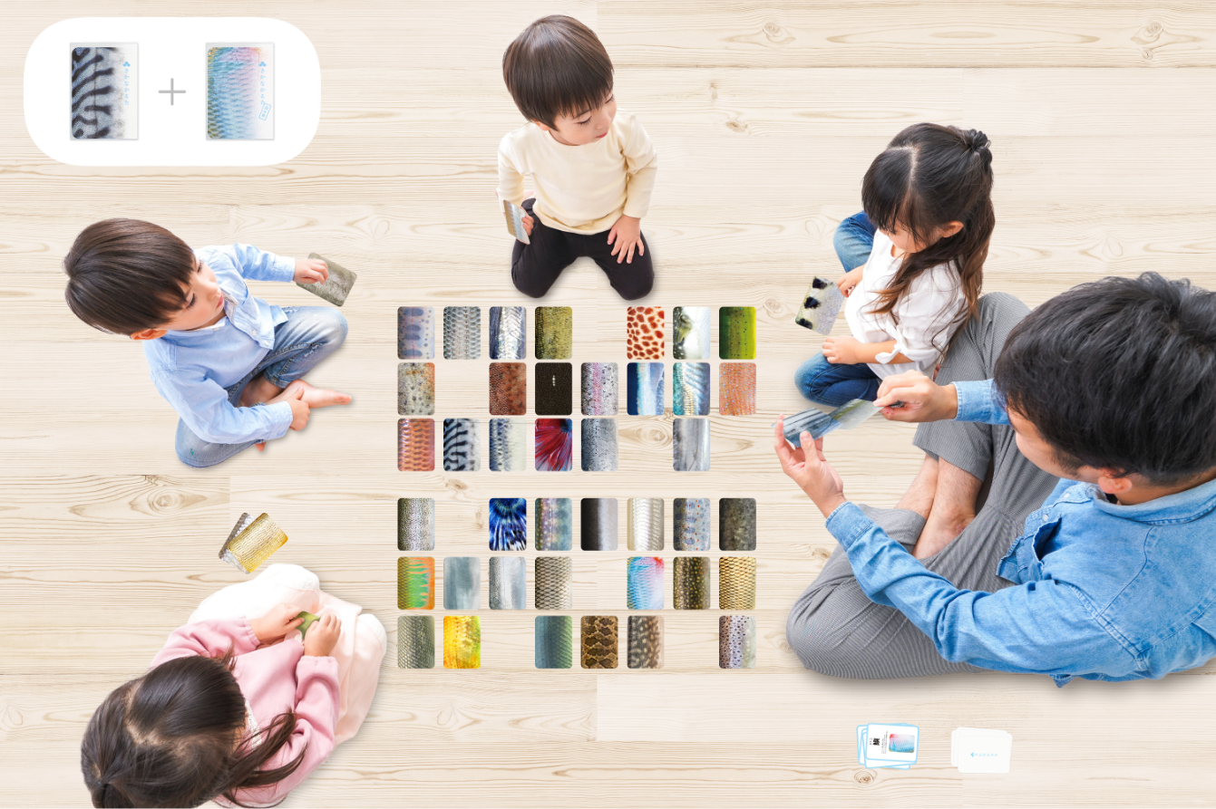 さかなかるたは、「見て」「触って」遊びながら魚について学ぶ事ができるため、視覚や触覚を刺激する知育玩具としても使用可能です。