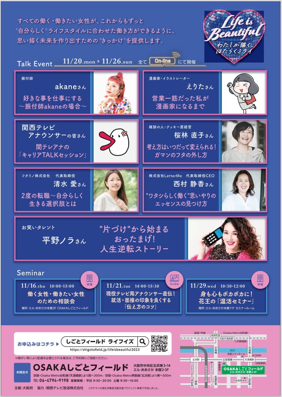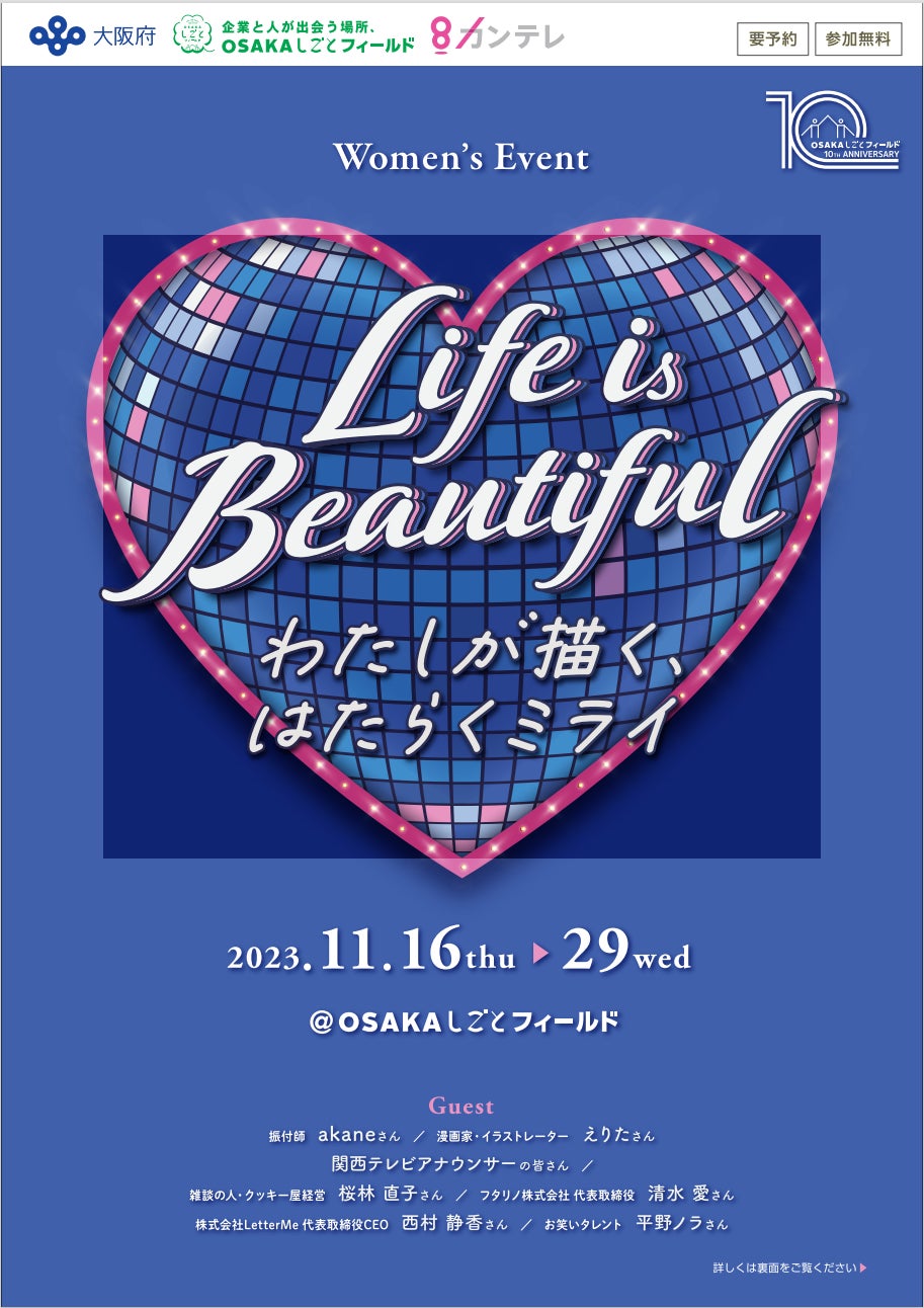 【11/16開始】大阪府 OSAKAしごとフィールド主催 「Women's Event 『Life is Beautiful』わたしが描く、はたらくミライ」にLetterMe代表西村が登壇