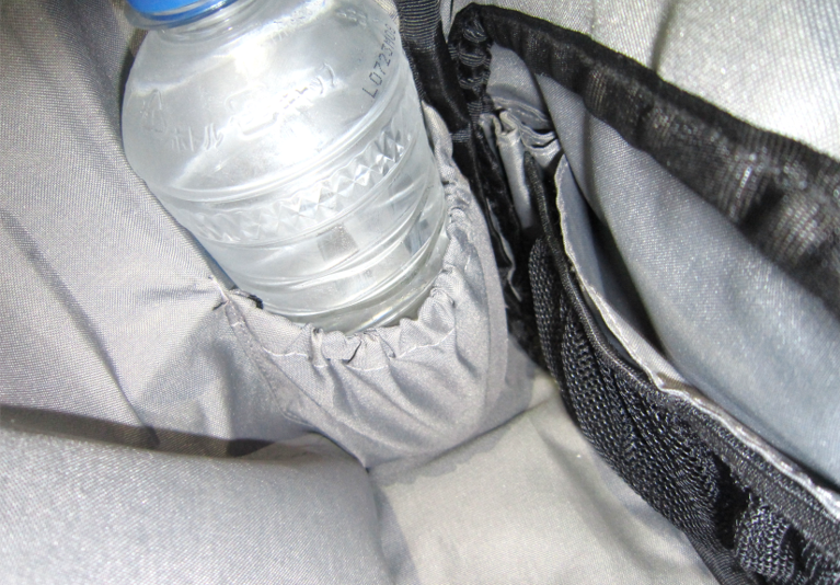 内部にはペットボトルを収納できるスペースが2か所も。直径7cm程度の水筒を収納することも可能です。