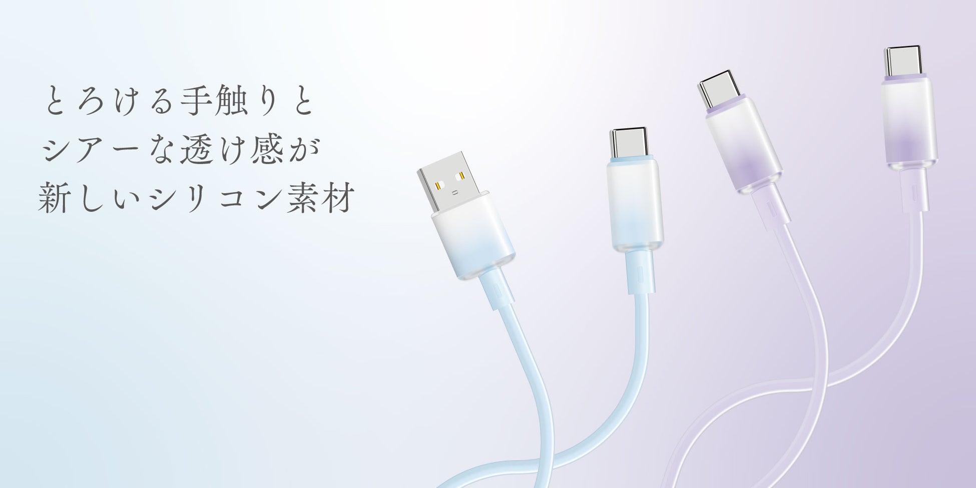 ・透け感を活かした素材とニュアンスカラーのシリコン素材を組み合わせた新感覚ケーブルです。