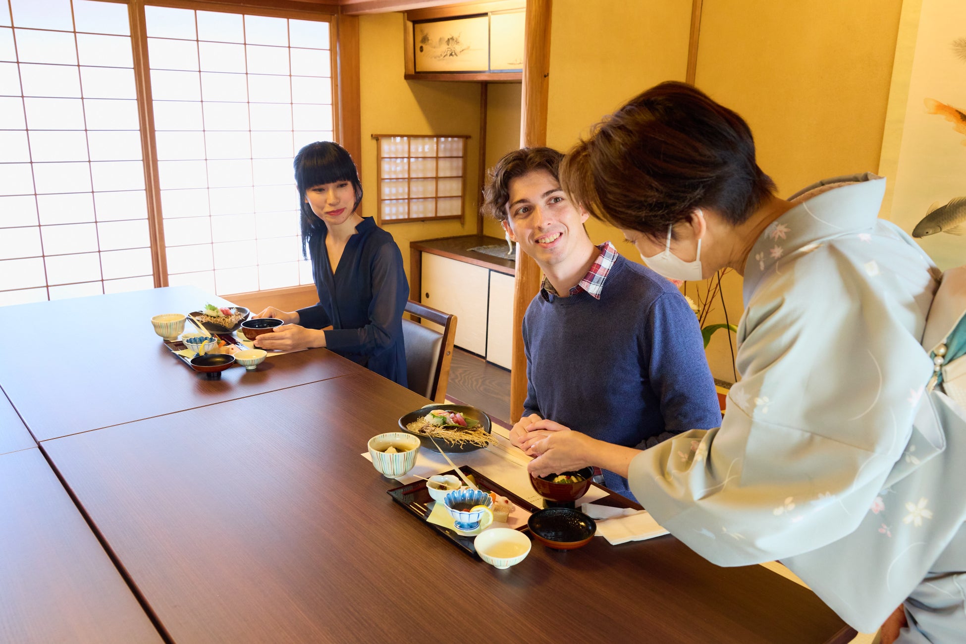 昼食は五風荘で、旬の食材を使った特別会席料理を味わいます。美しい庭園を眺めながらゆったりとお食事を楽しめます。料理に使用している食材や食べ方を地域の食に精通したスタッフから解説いたします。