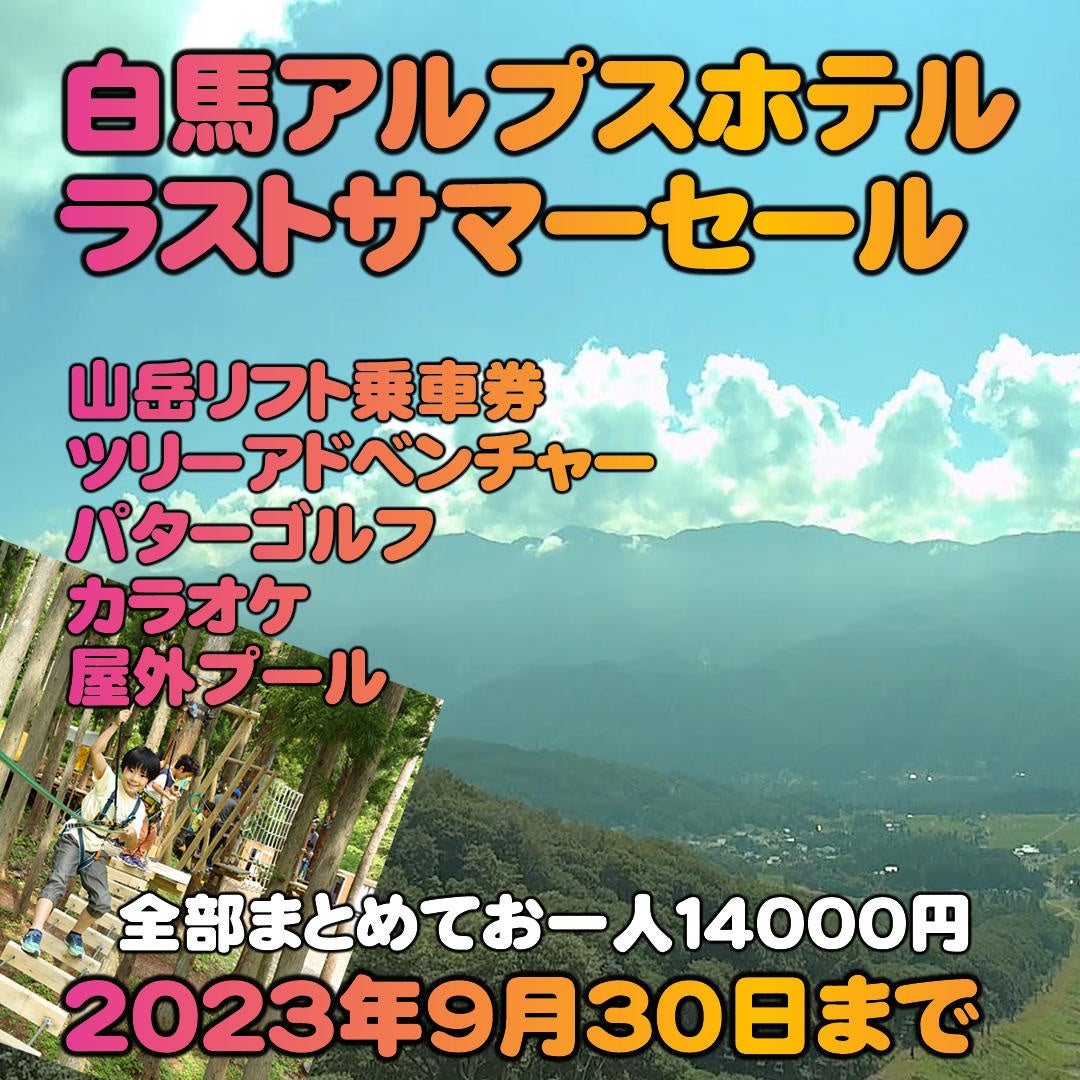 株式会社白馬アルプスホテル(長野県北安曇郡小谷村白馬乗鞍高原12851、代表取締役:鷲澤 汪)が運営する「白馬乗鞍温泉スキー場」(支配人:相澤一義)では、山岳リフトのグリーンシーズン運行を開始記念してラストサマーセールを開催します。