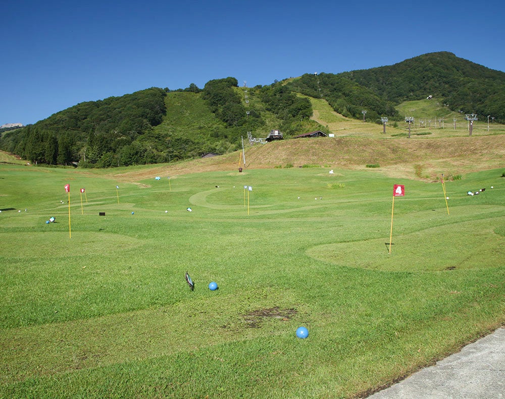 白馬乗鞍温泉の白馬アルプスホテルにある、スキー場の起伏を使った多彩なレイアウトの18コースは飽きがこなくて楽しさ満点! 爽やかな風のなかで思いっきり遊ぼう!